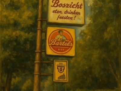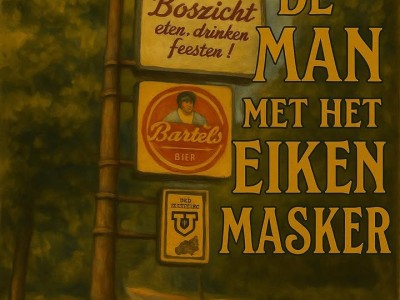 𝗗𝗲 𝗠𝗮𝗻 𝗺𝗲𝘁 𝗵𝗲𝘁 𝗘𝗶𝗸𝗲𝗻𝗺𝗮𝘀𝗸𝗲𝗿 Het was eind september 1953 toen een gure storm over Hooghalen trok. De lucht was donker als roet, en de wind gierde door de oude eiken naast de herberg. Boer Bartels stond achter zijn tap, peinzend, toen de deur met een klap openvloog. In de deuropening stond een man. Druipend van de regen, lang van gestalte, gehuld in een lange mantel. Zijn gezicht ging schuil achter een ruw uitgesneden houten masker van donker eikenhout, met slechts twee gaten voor de ogen. Niemand zei iets. De man stapte naar voren, zijn laarzen sloegen doffe klappen op de houten vloer. “Boer Bartels,” klonk een diepe, drogende stem. “Ik kom voor de kamer boven de tap.” Bartels verstijfde. Die kamer — gesloten sinds 1893 — werd door niemand meer genoemd. De sleutel had hij diep in de schouw gemetseld, voor de zekerheid. “Die kamer is dicht. Altijd al geweest,” bromde hij. De man tikte op de bar met een lange, houten vinger. “Niet voor mij.” Een siddering trok door de herberg. De lucht leek zwaarder te worden. De gasten zwegen, hun kruiken halverwege de mond. Boer Bartels haalde diep adem, liep zwijgend naar de haard, stak zijn hand in een kier en haalde de sleutel tevoorschijn. Hij wist niet waarom hij het deed. Alleen dat hij het moest. Samen klommen ze de houten trap op. De herberg kraakte bij elke stap. Op de overloop hing de deur van de verboden kamer als een schaduw uit het verleden. Bartels stak de sleutel in het slot. Het klikte met een geluid alsof iets oud en dorstig ontwaakte. Binnen was het koud. Droog. Een eenpersoonsbed, een lege kast, en in de hoek: een groot spiegelpaneel, dof van ouderdom. De man liep recht op de spiegel af. “Hier is het begonnen,” zei hij zacht. “Wat?” vroeg Bartels. De man draaide zich om. “Het eerste brouwsel. De bron. Het geheim waar je bier zijn kracht aan ontleent. Maar kracht eist balans. En balans… eist offers.” Plots barstte het houten masker open als droog schors. Eronder zat niets dan zwartte — geen gezicht, geen huid, alleen een kolkende leegte. De kamer vulde zich met ijzige wind. De spiegel begon te rimpelen als water. Bartels greep naar zijn hals en haalde zijn leren bierfles tevoorschijn. Zonder aarzeling slokte hij een volle teug Bartels Bier. Het gloeide in hem als vuur. Hij brulde, greep de houten stoel en smeet die tegen de spiegel. Die brak — niet in scherven, maar in rook. De man met het eikenmasker verdween met een laatste fluistering: “De kamer blijft niet eeuwig gesloten…” Sindsdien is de deur weer dicht. Maar ’s nachts, als de wind uit het zuiden komt, zien voorbijgangers licht schijnen achter dat ene, blinde raam boven de tap. En Bartels? Die vult zijn kruiken met zwijgzaam gezicht. Want sommige waarheden smaken bitterder dan zijn bier.